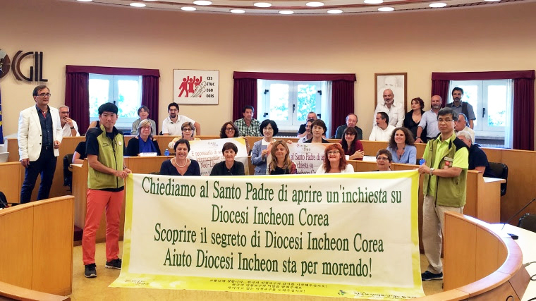 나는 대화하자는 요청마저도 외면당하는 현실에 좌절하며 인천교구 앞에서 7일간의 단식투쟁을 했다. 그러나 여전히 대화의 기미는 보이지 않았고, 이에 보건의료노조는 나를 포함한 원정팀을 구성해 교황청이 있는 이탈리아의 바티칸 원정투쟁에 나섰다. 10일간 로마에 머물며 바티칸의 교황청 각 단위를 찾아 공식, 비공식 면담을 통해 우리의 상황을 알리는 서한을 전달하고, 교황청에서 한국 천주교 인천교구에 조사단을 파견할 것을 요청했다. 이탈리아노동총동맹(CGIL)의 공공부문노조인 FP CGIL과 국제사무금융서비스노련(UNI) 등 국제노조단체의 연대로 많은 활동과 투쟁이 이어졌다. 바티칸 광장에서 프란치스코 교황 알현 행사에 두 차례 참여해 대형 현수막 시위를 전개했는데, 교황청 정문 앞에서 현수막 시위를 하던 중 경찰에 강제 연행되는 일을 겪기도 했다. 최근 교황청에서 이번 두 사건의 사태를 포함해 인천교구와 관련된 상황을 파악하는 절차를 진행하고 있는 것으로 알고 있다.