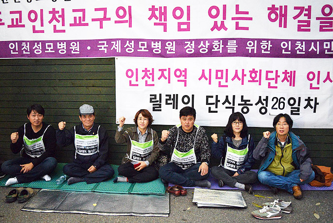 바티칸 교황청 원정투쟁까지 했지만 인천성모병원과 인천교구는 여전히 한 치의 입장 변화도 보이지 않고 있다. 급기야 지역시민대책위의 원로들이 1일 릴레이단식에 돌입했고 10월26일 현재까지 32일차 단식을 이어가고 있다. 매주 화요일에는 답동성당 앞에 100여 명씩 모여서 촛불 집회를 진행한다. 급기야 가톨릭 평신도들이 사태의 심각성에도 불구하고 여전히 대화의 문을 열지 않고 있는 인천교구에 대해 문제의식과 우려를 표명하며 주교에게 사태해결을 청원하는 서명운동을 진행하고 있다.