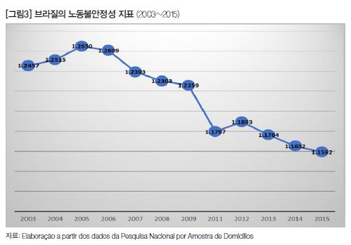 이어서 [그림3]은 노동의 불안정성 지표를 나타내는데, 보시면 계속해서 줄어드는 상황을 볼 수 있습니다.
