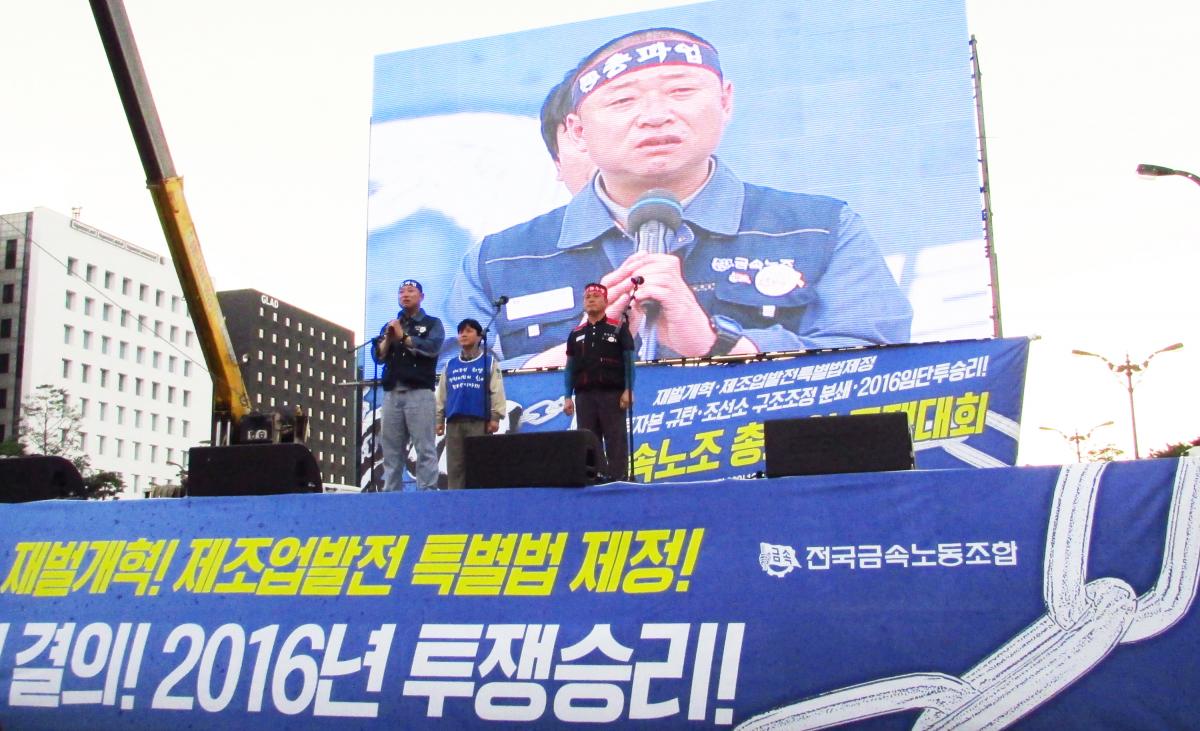 올해 노동계 하투에서 가장 주목할 만한 것은 금속산업 노동자들의 투쟁이다. 주로 임금·단체협약 교섭을 진행하던 예년 여름과 달리 올해 금속산업 노동자들의 투쟁 이슈는 재벌개혁, 구조조정 반대, 정부의 노동개혁 반대 등으로, 그야말로 ‘정치투쟁’이었다.