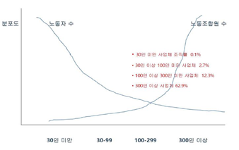 [그림 1] 사업체 규모별 노동조합원 분포(2015)
