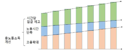 [그림 3] 노동시간 단축, 고용 확대, 시간당 임금 제고를 통한 총 노동소득 확대