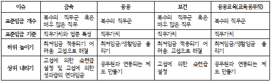 [표 6] 금속, 공공, 보건, 공공교육 산별임금체계 도입 시 쟁점과 대응 방향 검토