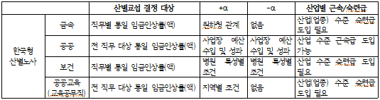 [표 7] 금속, 공공, 보건, 공공교육 산별임금교섭체계 제안