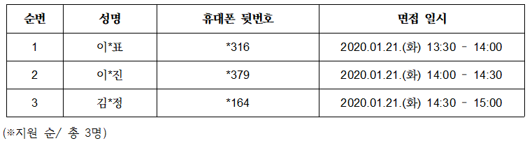 연구소 신규 연구원 1차 합격자 및 면접 일정을 아래와 같이 공지합니다.