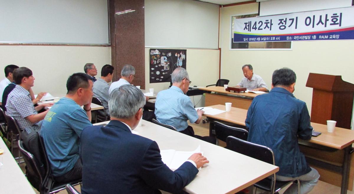 이날 이사회는 이사 24분이 참석 또는 위임을 하여 성원이 되었으며, 이사 선임 인준, 2016년 상반기 사업보고 및 결산보고, 2016년 하반기 사업계획(안) 등을 협의하였습니다.