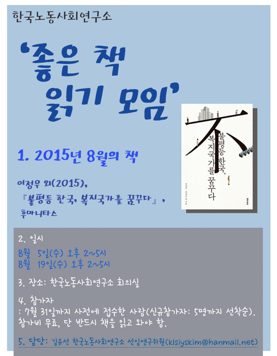 연구소는 오는 8월에도 '좋은 책 읽기 모임'을 진행합니다.