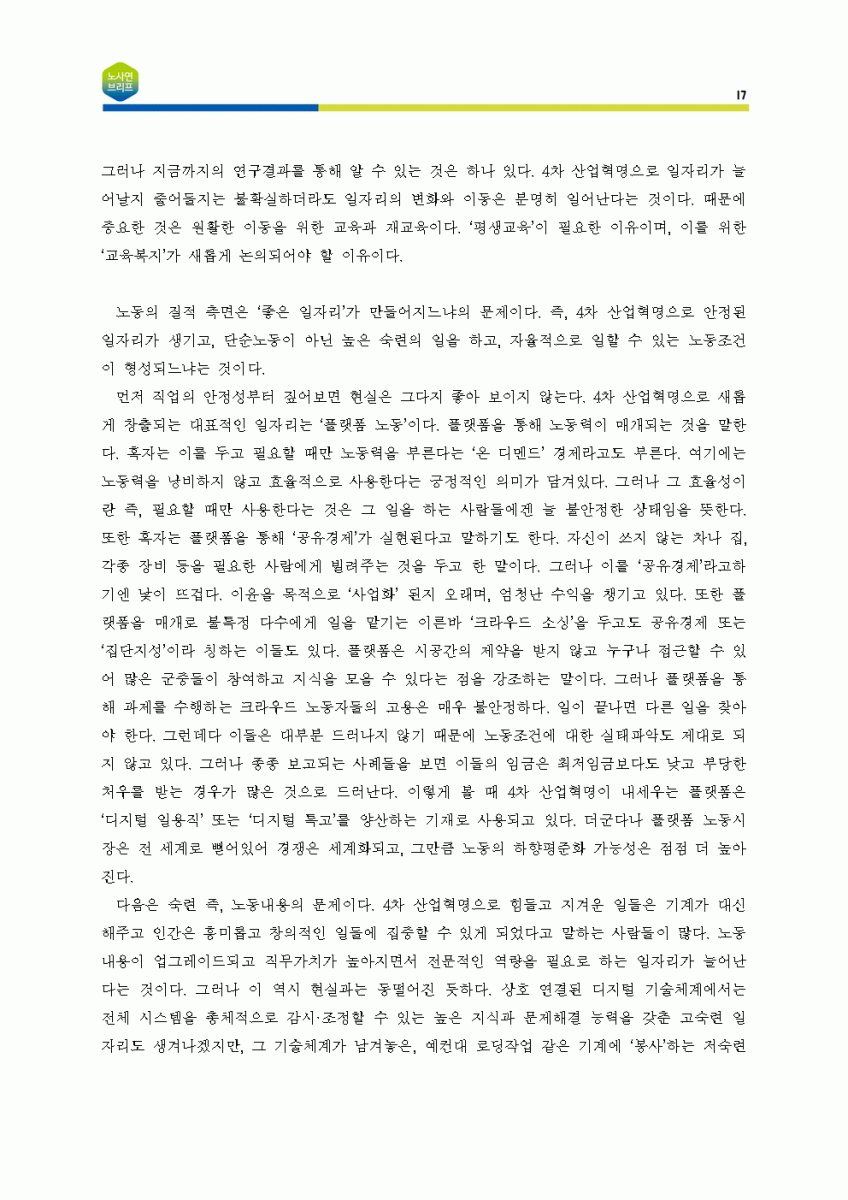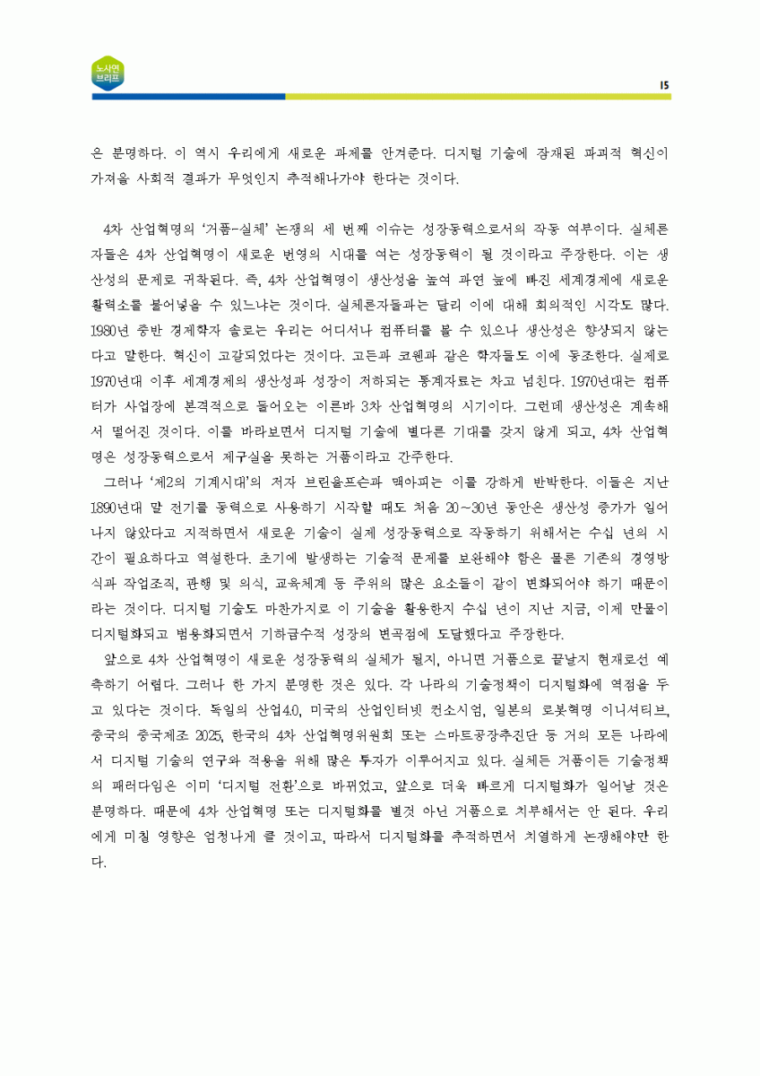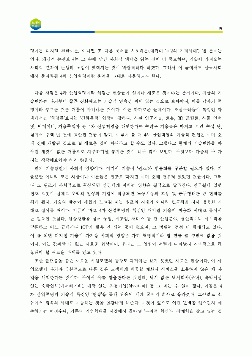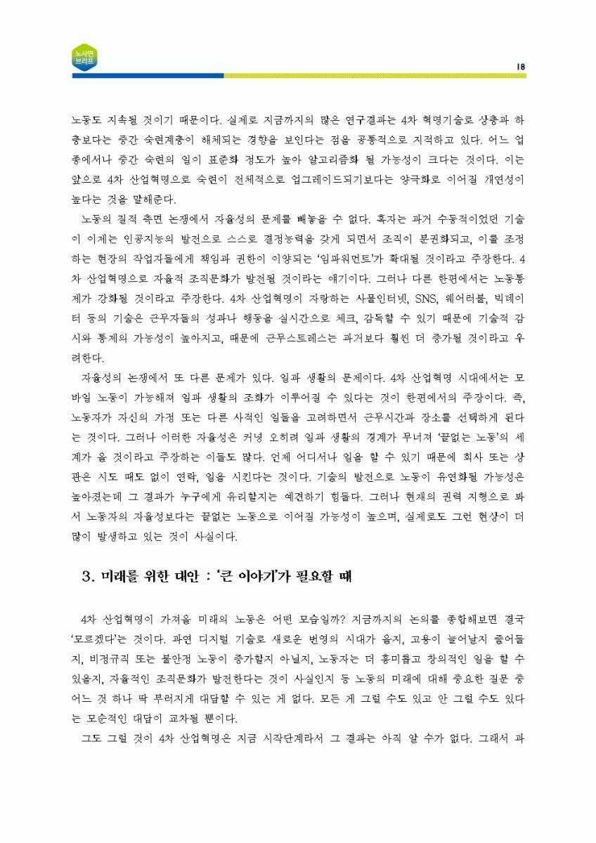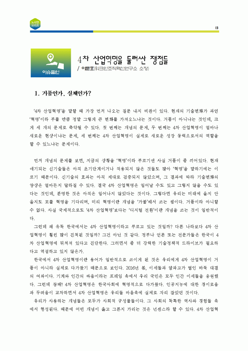 [노사연브리프 제5호_2018-05_이슈줌인] 4차 산업혁명을 둘러싼 쟁점들